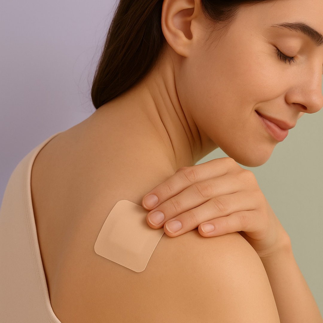 Collez-le. Respirez. Détendez-vous. Pas de pilule, pas de routine compliquée — juste un geste, chaque soir.
